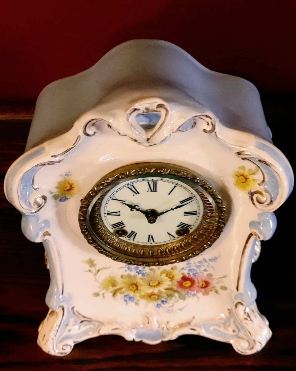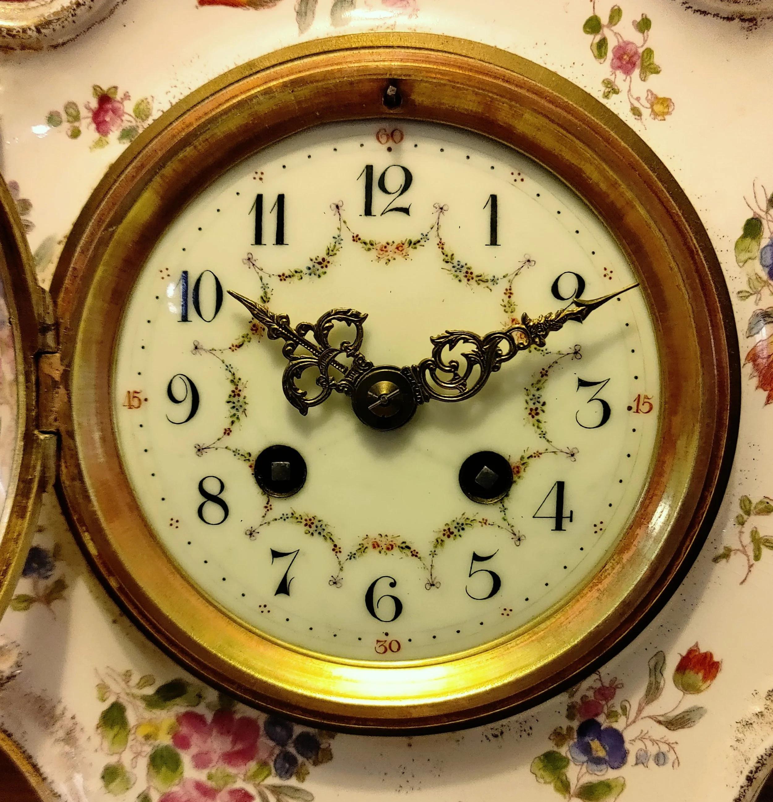 Clock Type: Decorative Mantel - Brass and Porcelain
