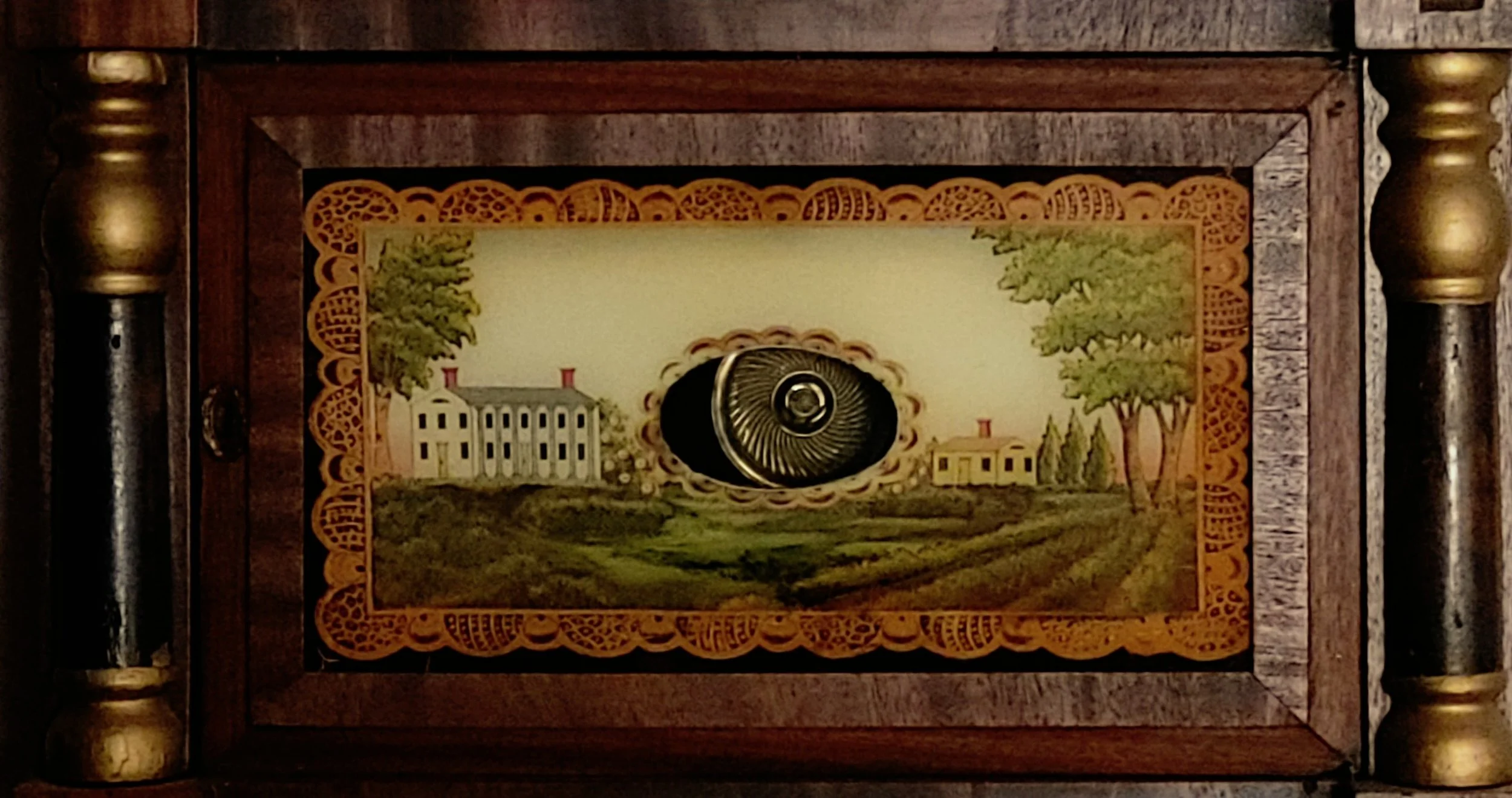 Clock Type: Triple Decker- Carved Column and Splat with Looking Glass