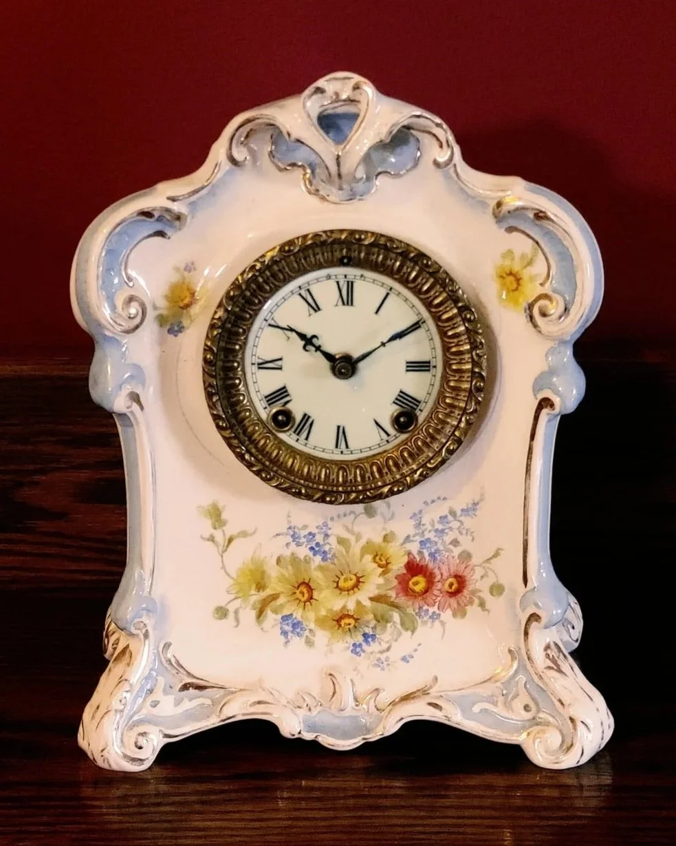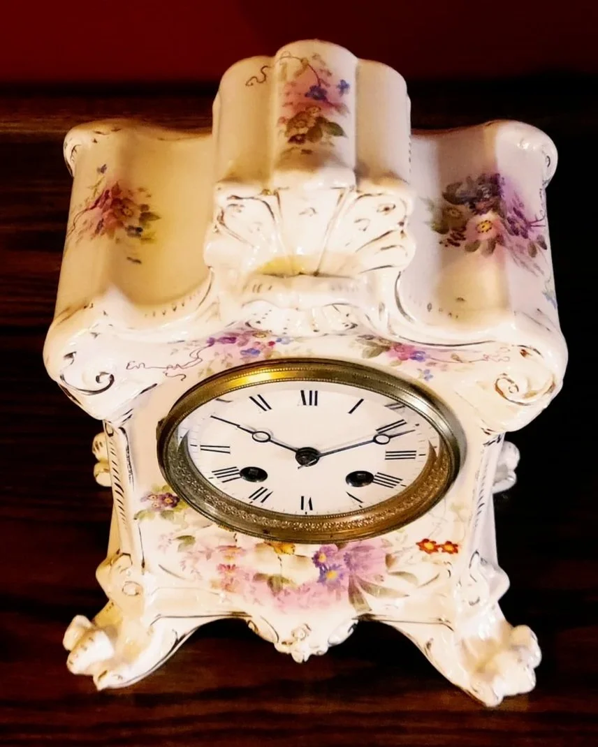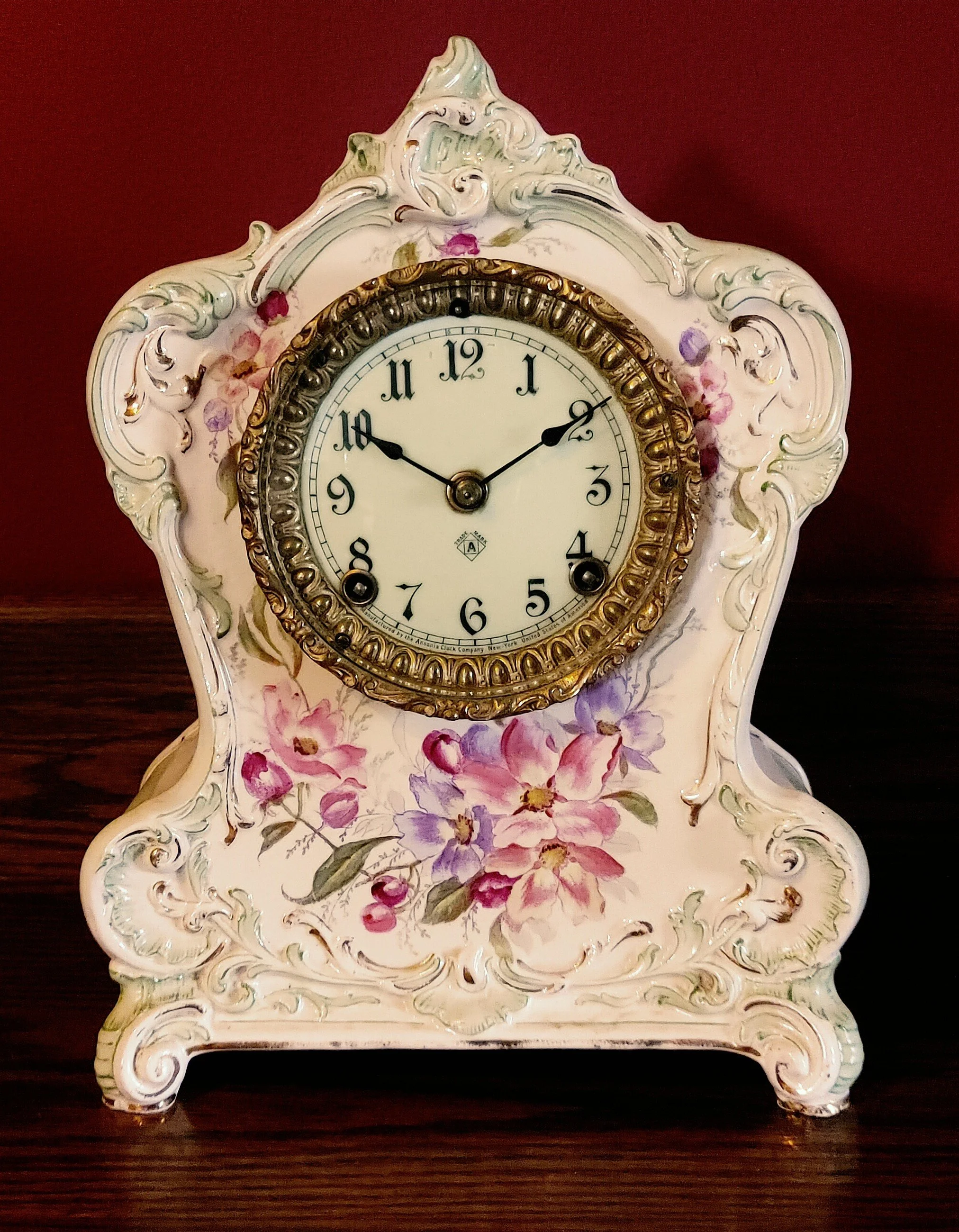 Special Notes: Royal Bonn China clock cases were made in Bonn, Germany, specifically by the Franz Anton Mehlem Earthenware Factory, which operated from 1836 to 1920. These cases were often imported to the United States and fitted with clock movements by companies like Ansonia Clock Co.