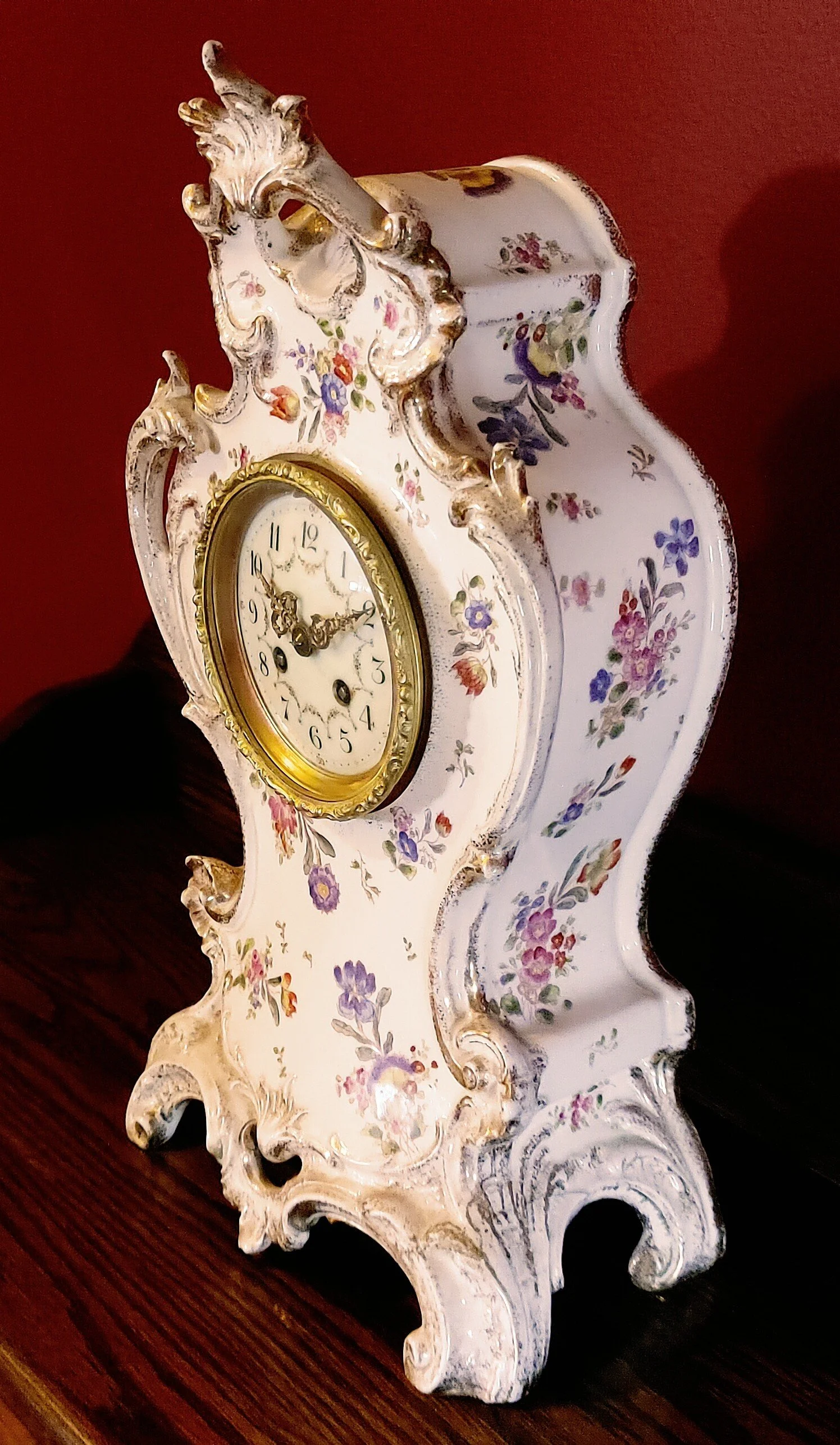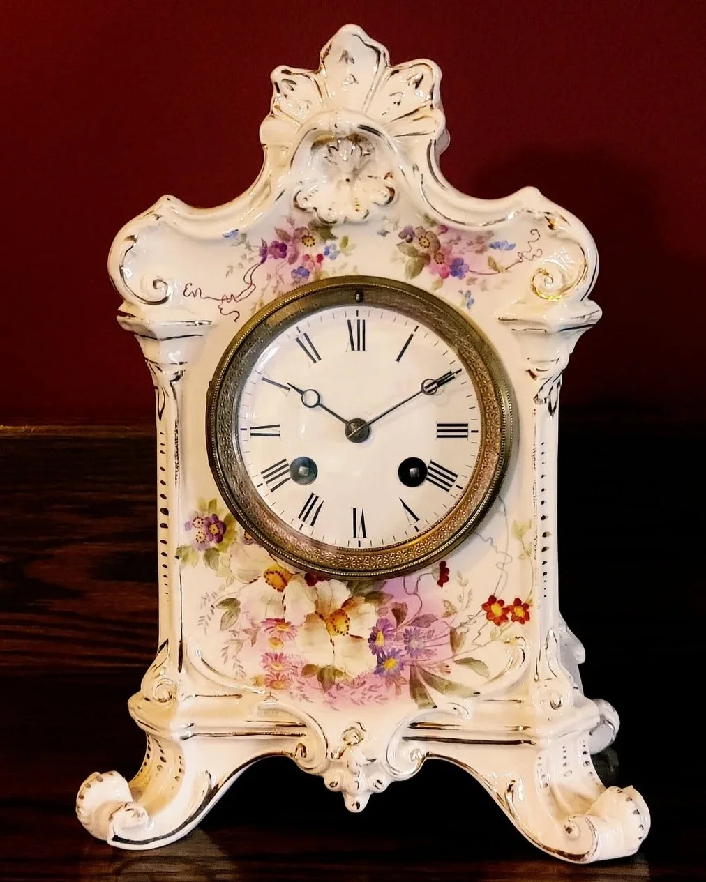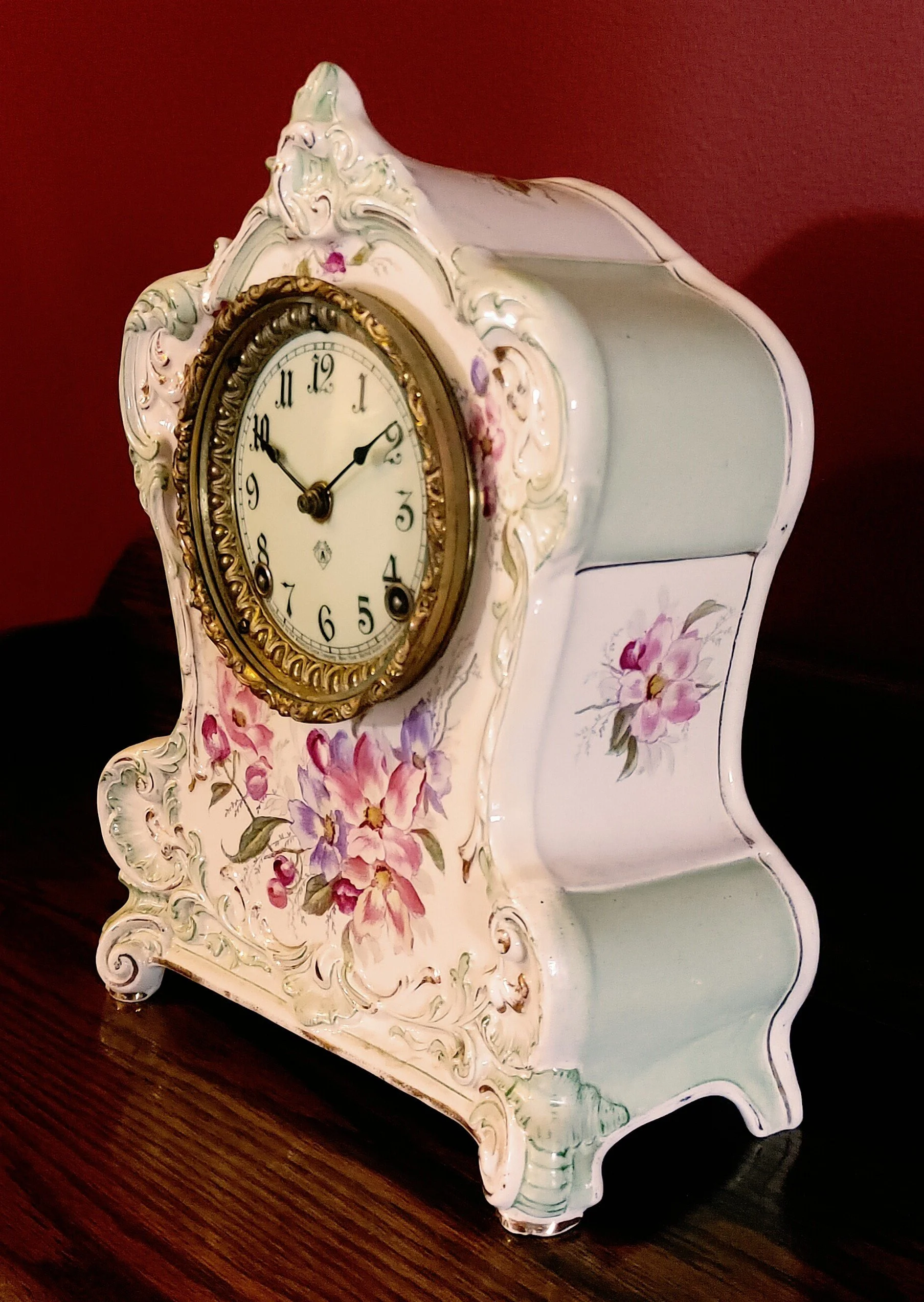 Special Notes: Royal Bonn China clock cases were made in Bonn, Germany, specifically by the Franz Anton Mehlem Earthenware Factory, which operated from 1836 to 1920. These cases were often imported to the United States and fitted with clock movements by companies like Ansonia Clock Co.