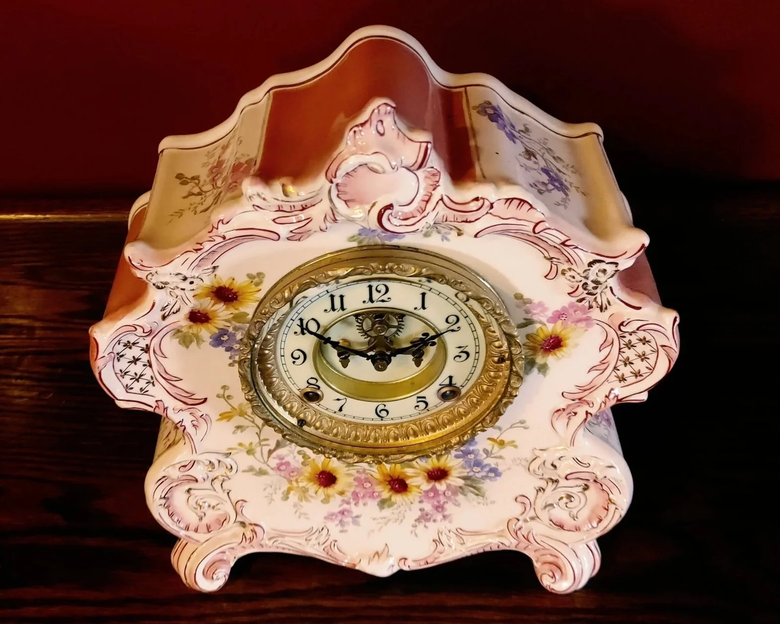 I have not performed a deep dive into the history of this company, but I did learn that it was founded in 1885 by Edward Davies, a former superintendent of works for the Ansonia Clock Company. This probably explains why the clock case and movement look more like an American clock than a British one. Unfortunately, the company did not stay in business for long, closing in 1909. Nevertheless, this is a very interesting looking clock case with a great deal of detail and a very nice finish.